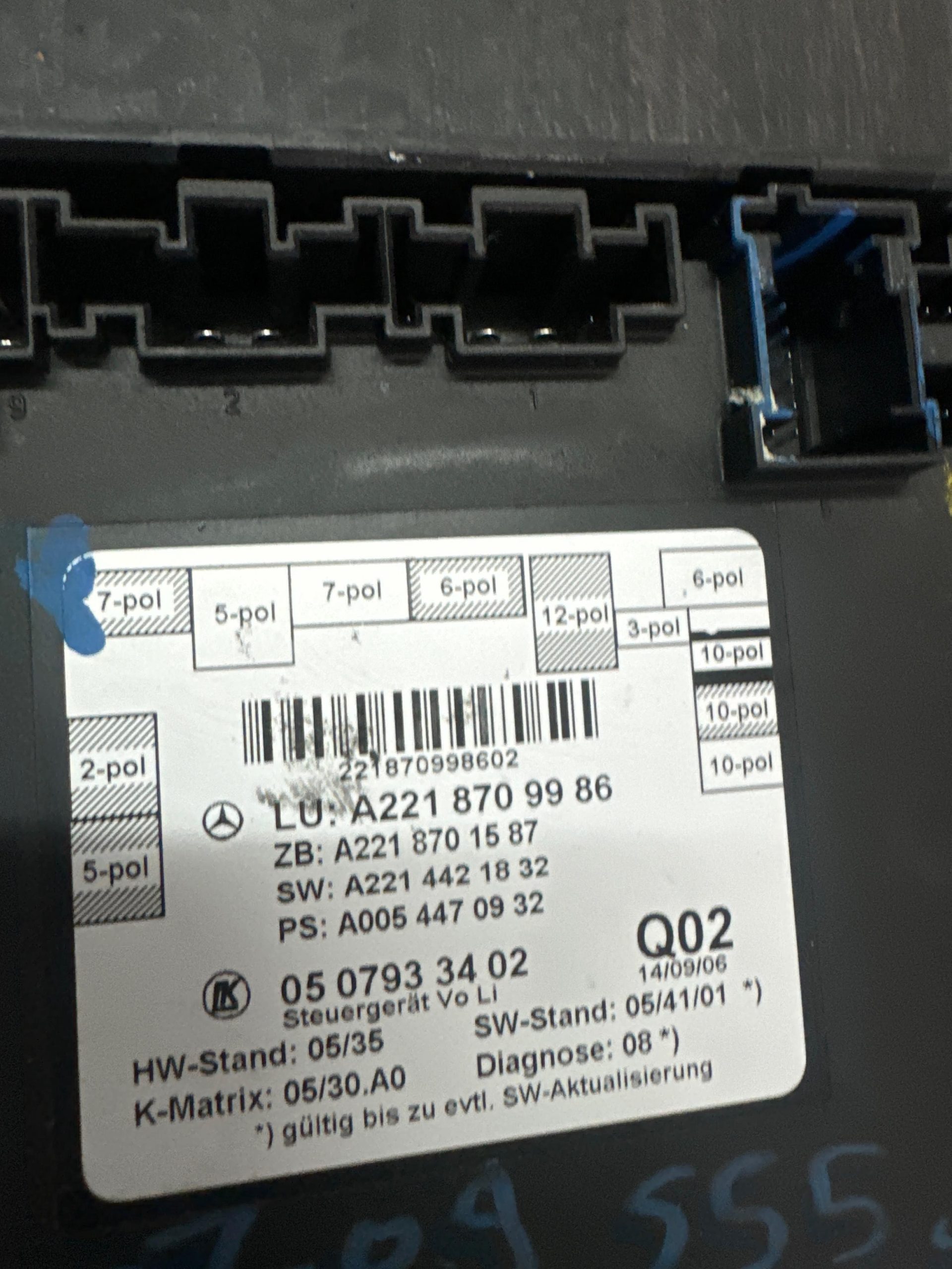 Mercedes-benz front left door control unit. A 221 870 99 86