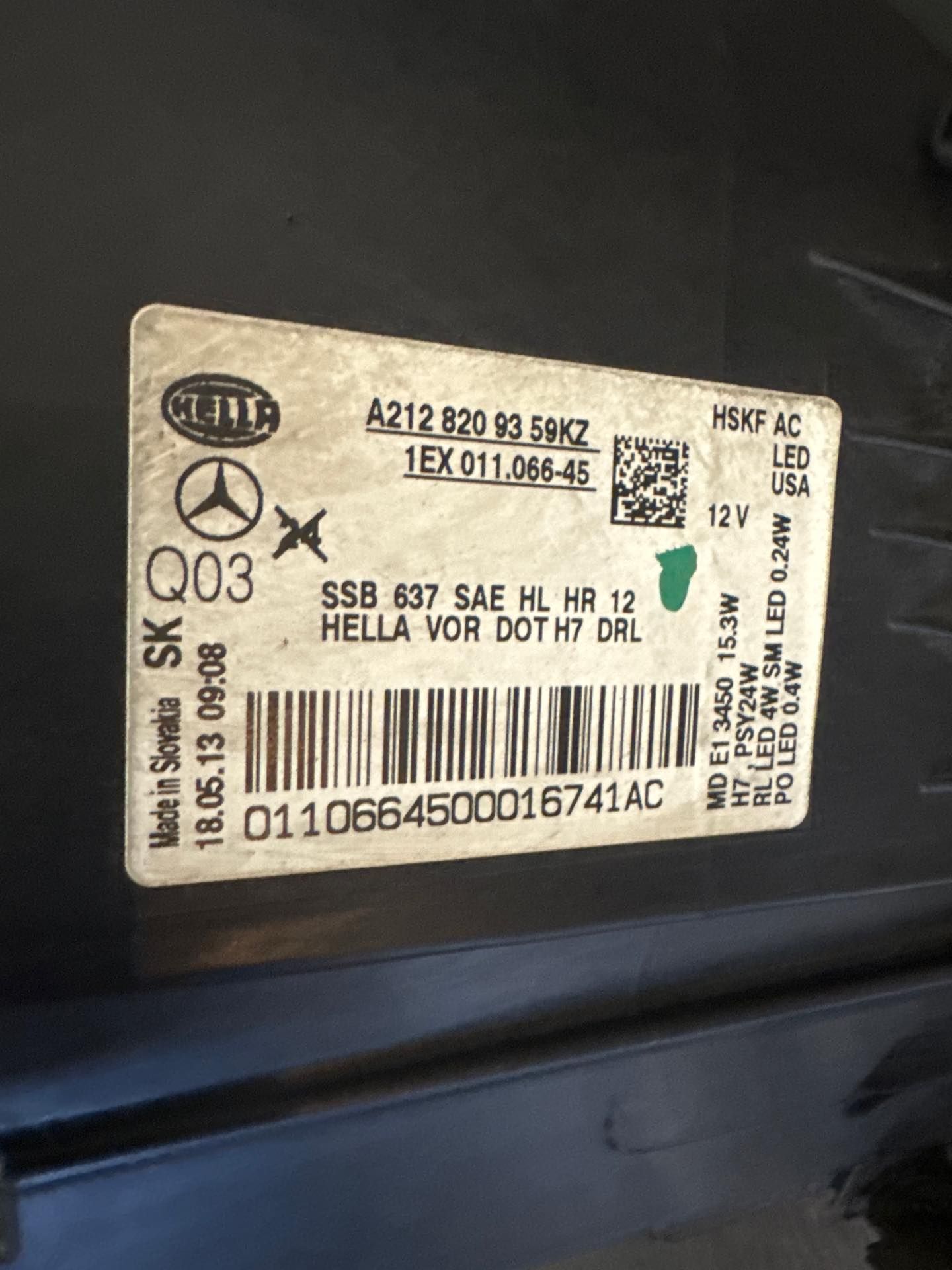 Mercedes-benz left headlight, w/o adapter headlamps. A 212 820 93 59